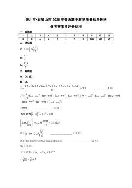 2025年银川市石嘴山市高中数学统考试卷答案